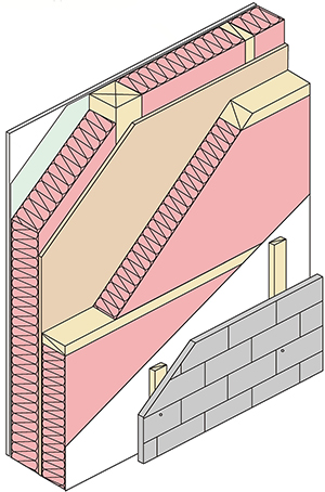 暖房エネルギーを削減するためには、壁一杯の105mm断熱では全く足りず、さらに105mmを外に付加する210mm断熱工法が開発されました。