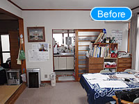 和室畳をフローリングに変える事でバリアフリーにする事ができ、またLDKとして機能させる事も可能になりました。